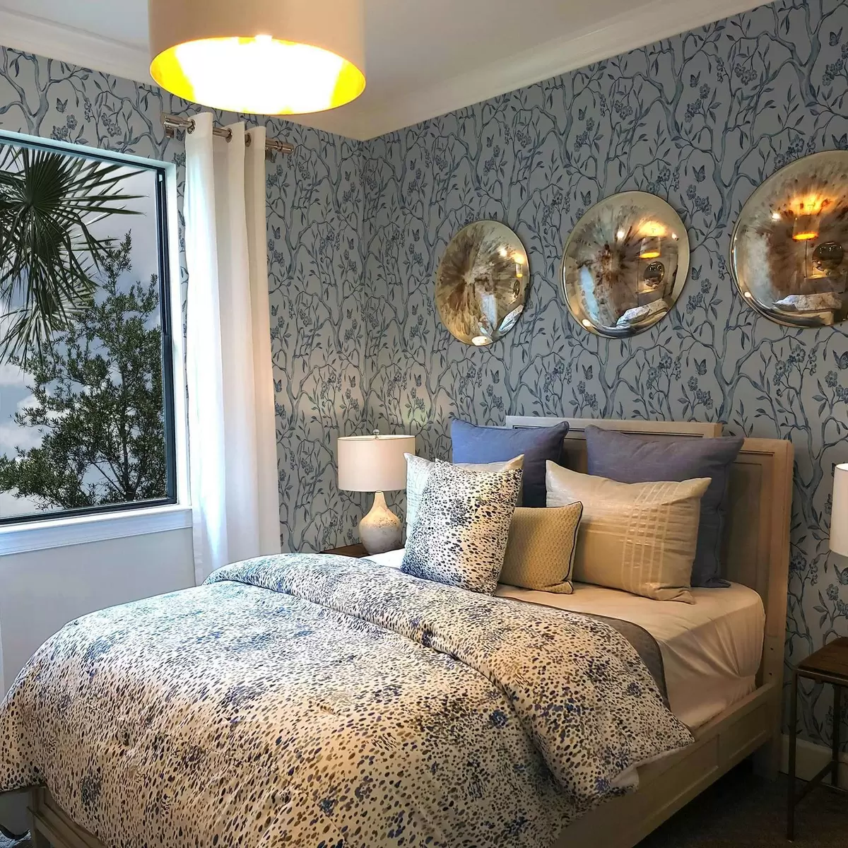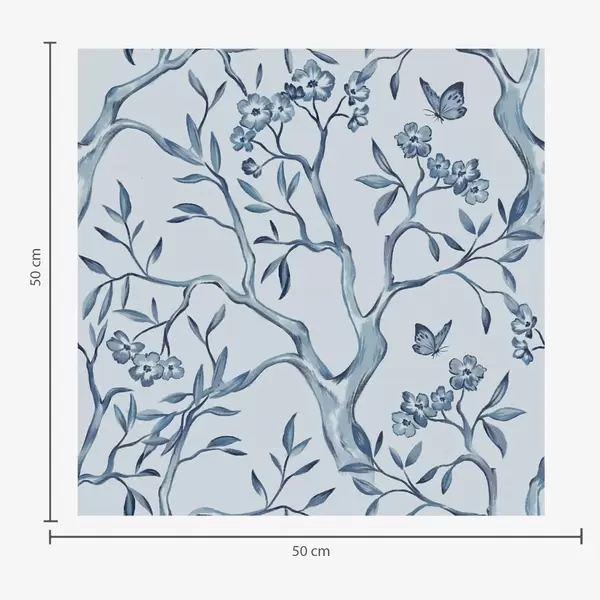 Tapeta Акварел плаве гране са цвећем и лептирима на светлој позадини бр. a00951