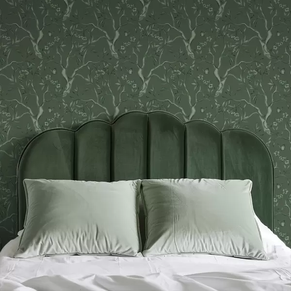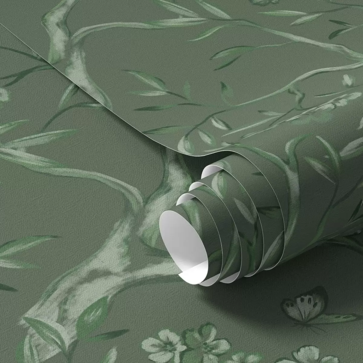 Tapeta Зелене цветне гране са лептирима на дубокој позадини бр. a00951v3