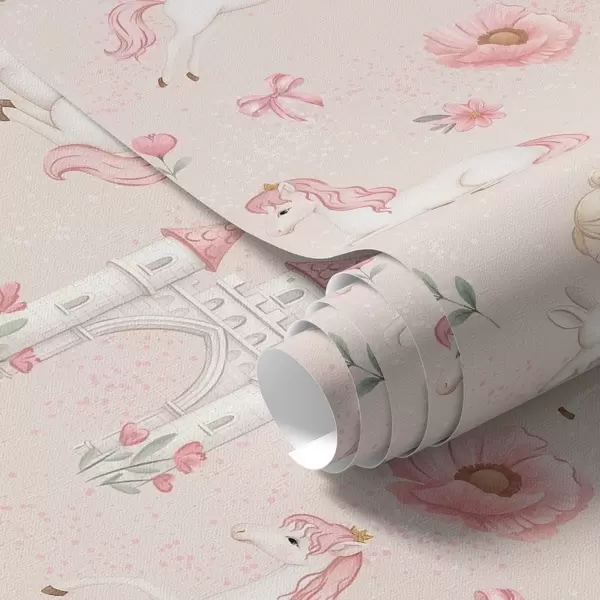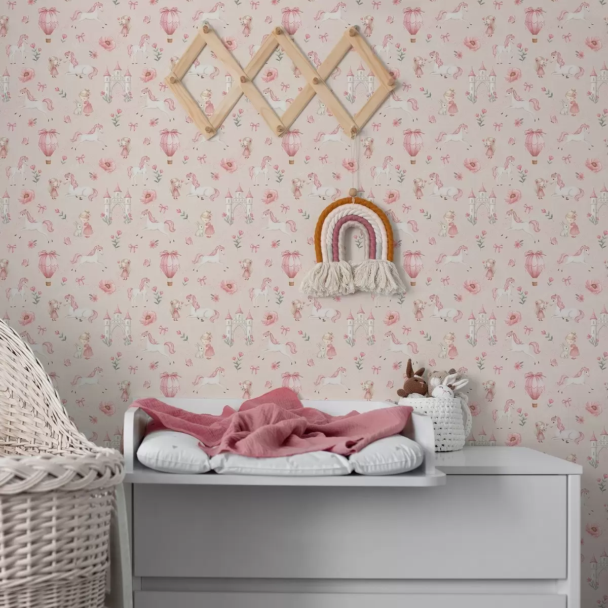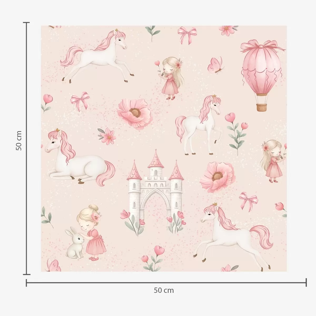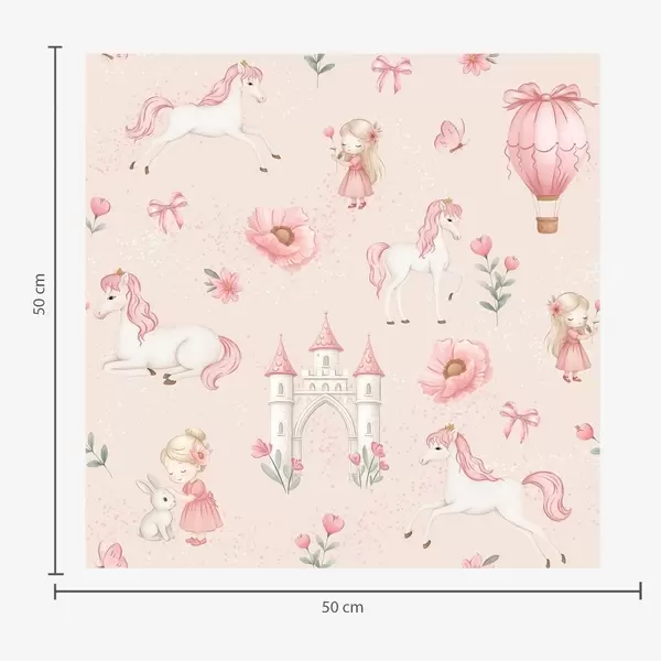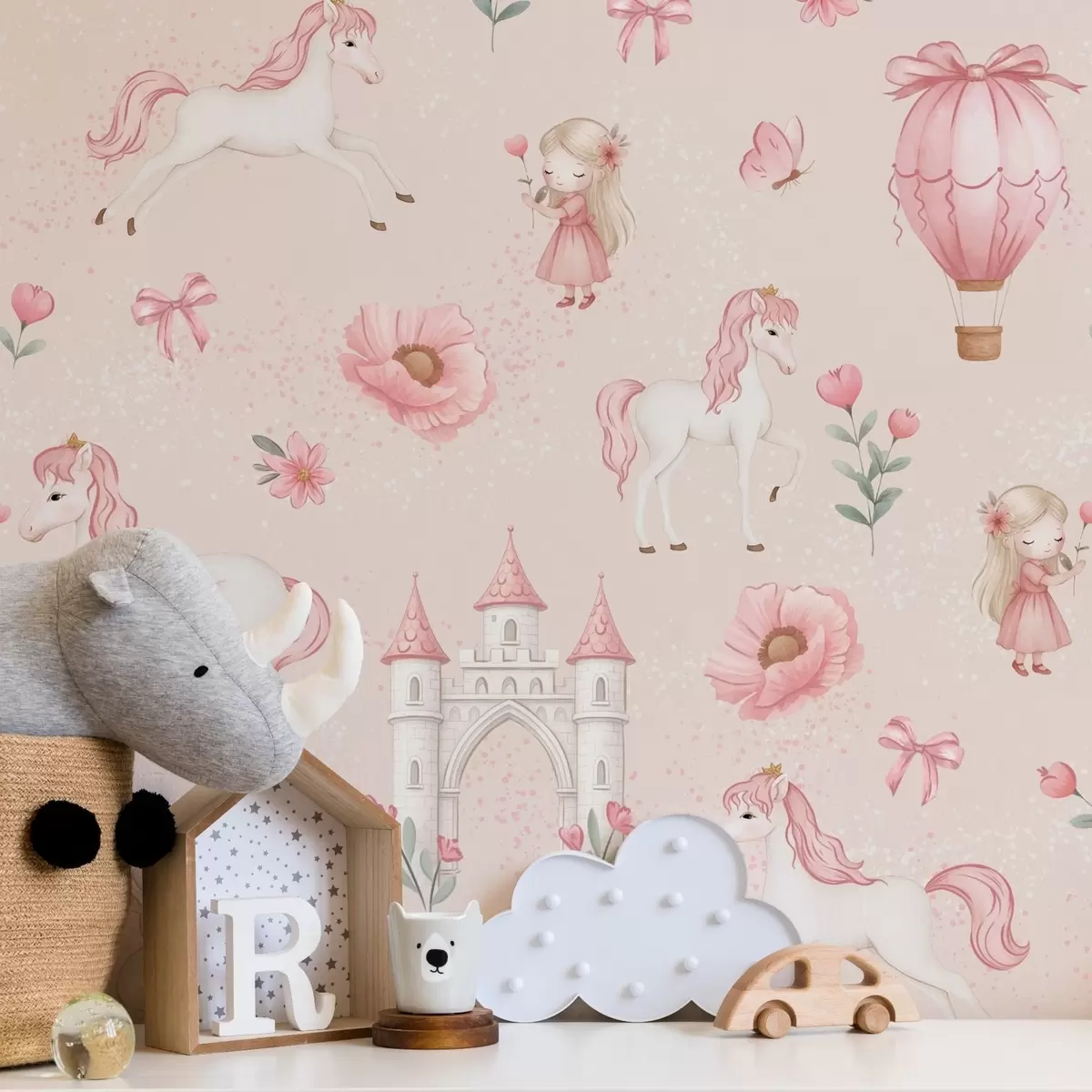 Tapeta Ружичасти једнорози, мале девојчице и замак на мекој позадини бр. a00957