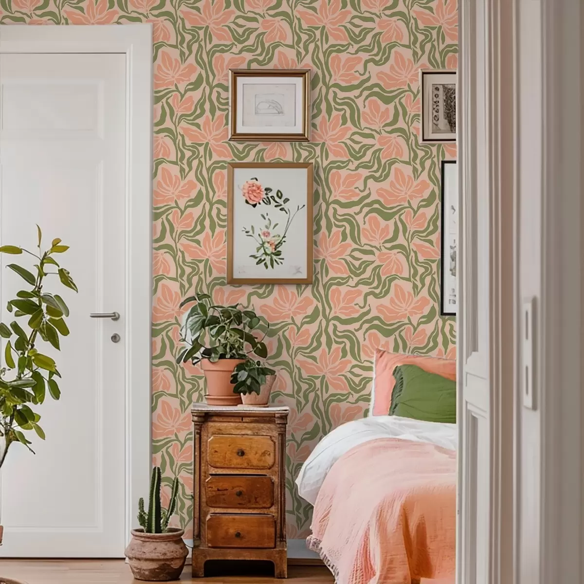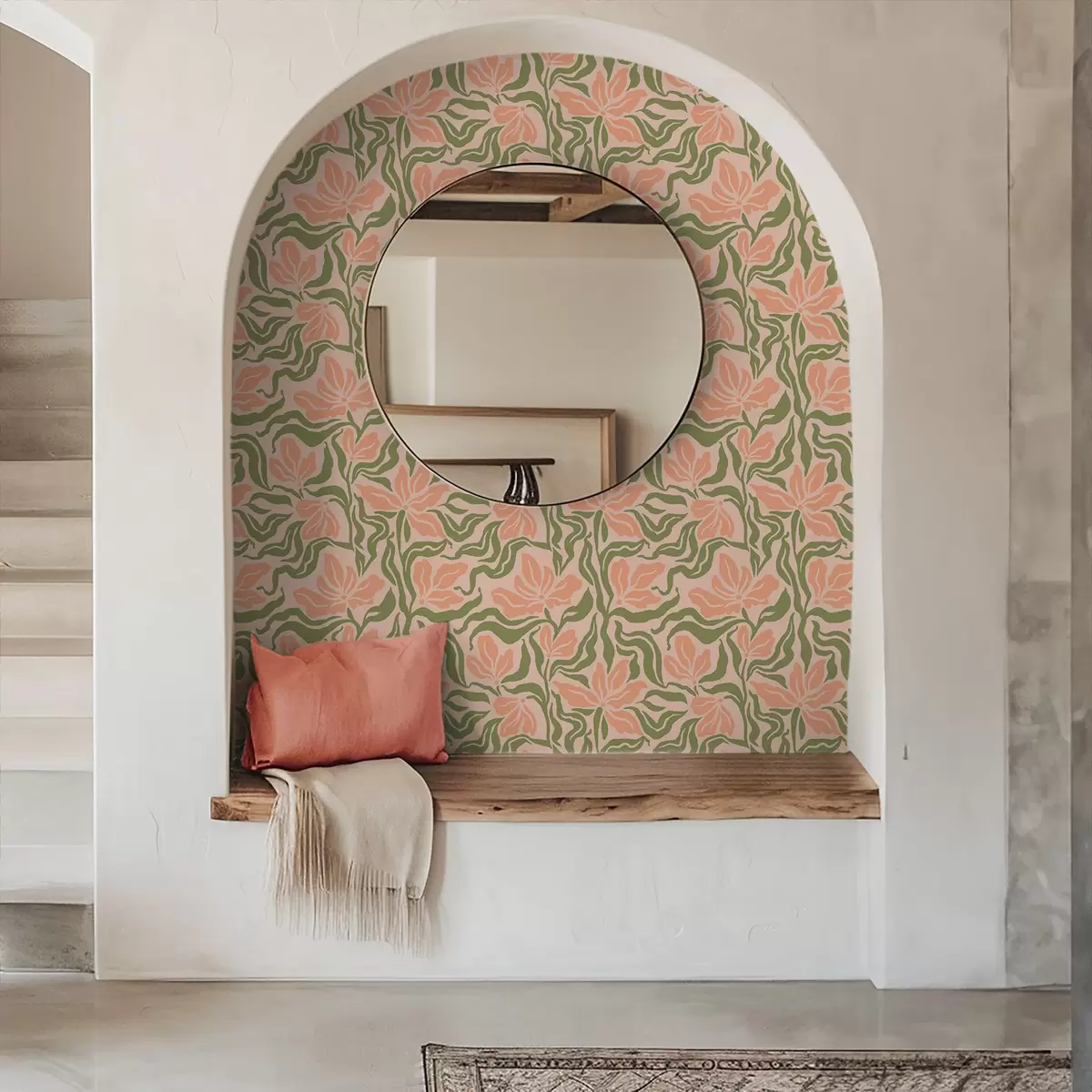 Tapeta Цветови брескве и листови маслине на мекој позадини бр. a00958v1