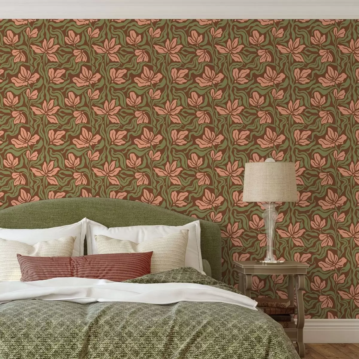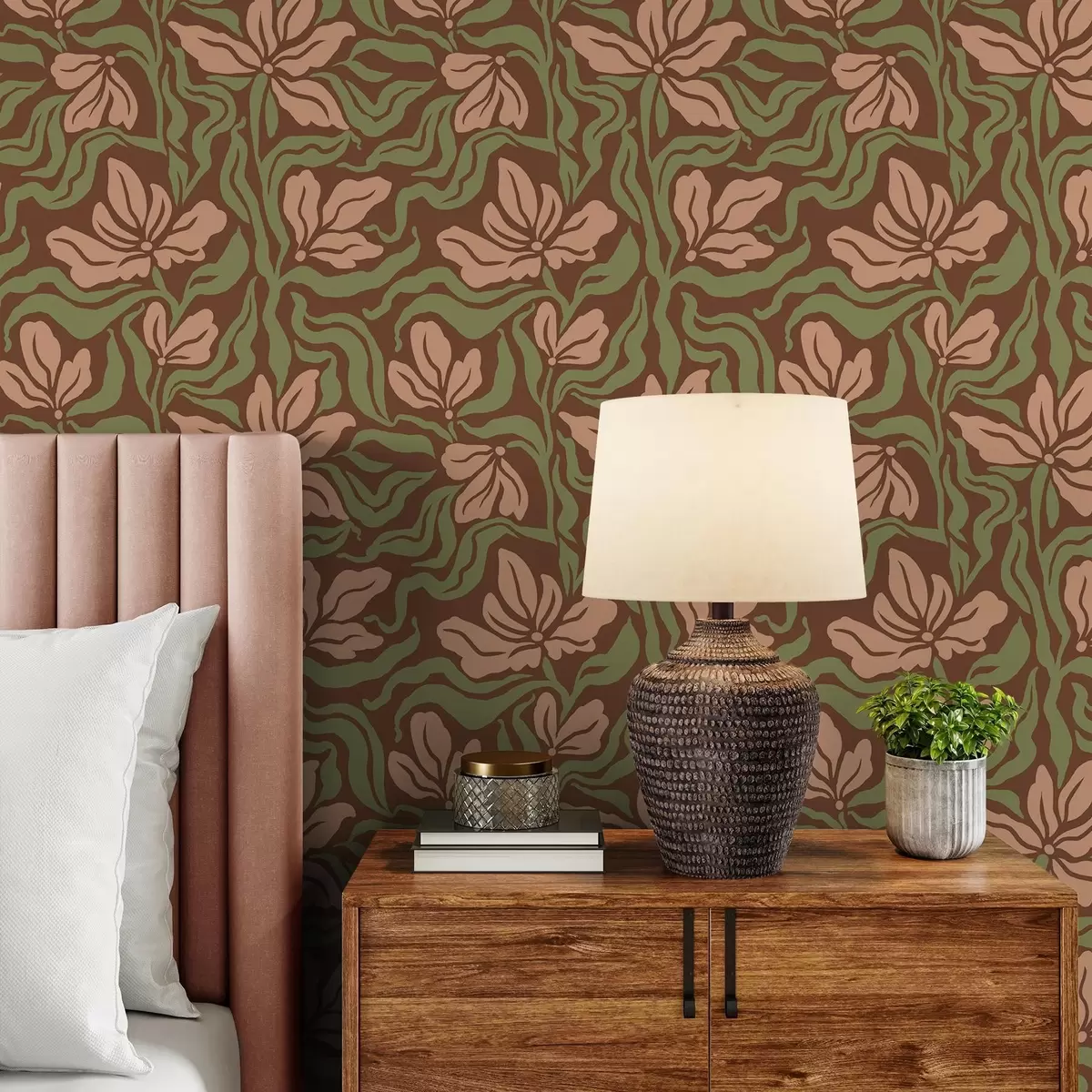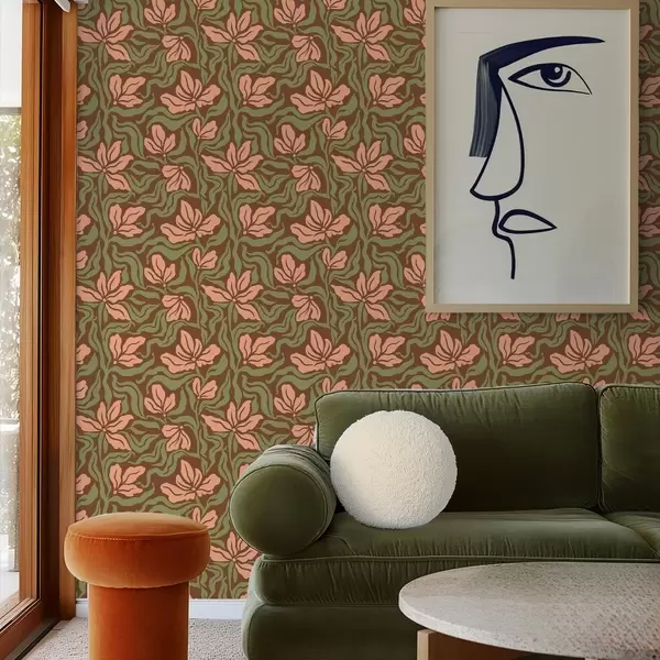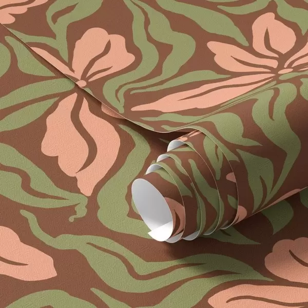 Tapeta Цветови брескве и зеленило на тамно смеђој позадини бр. a00958v2
