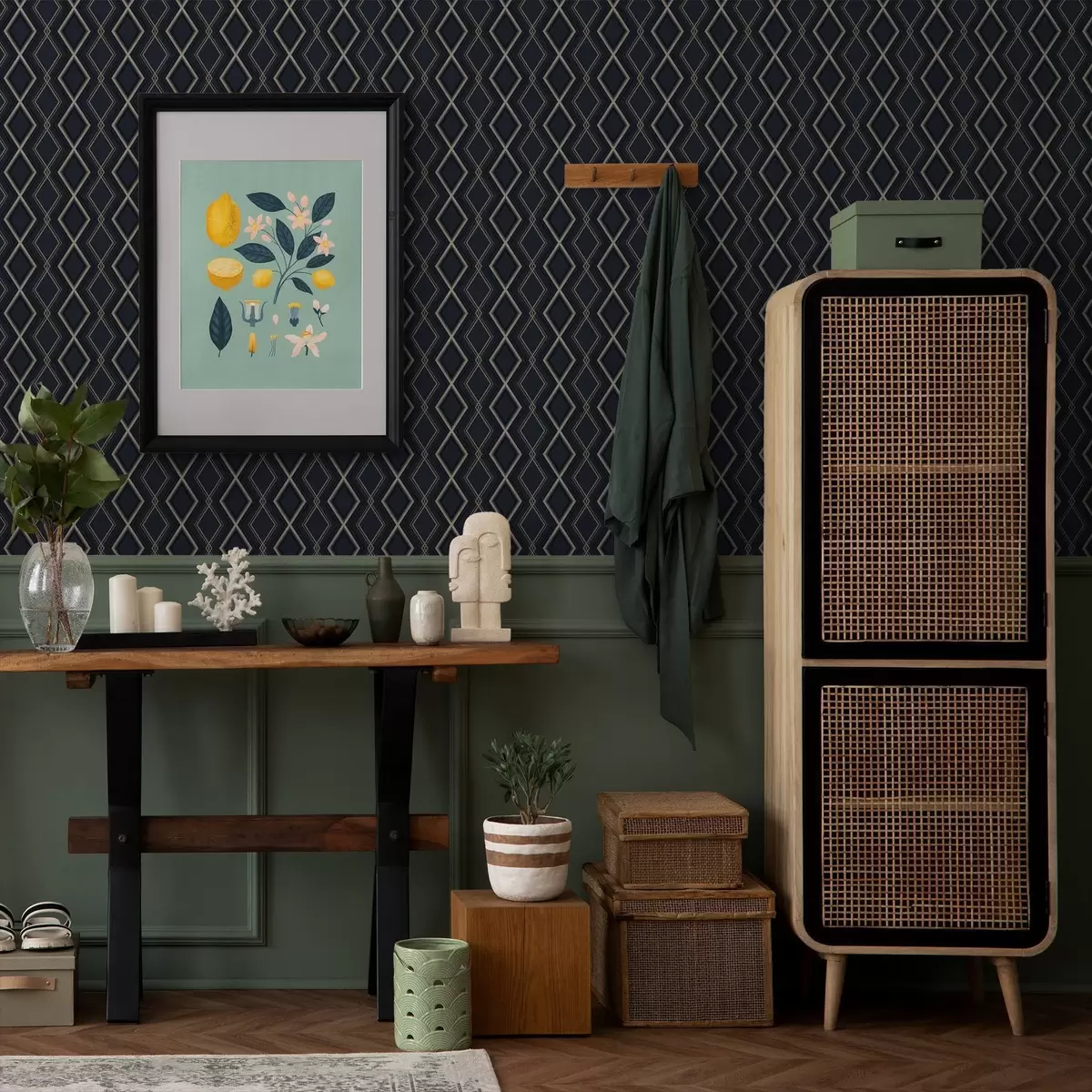 Tapeta Тамноплава дијамантска мрежа са танким светлим линијама бр. a00975