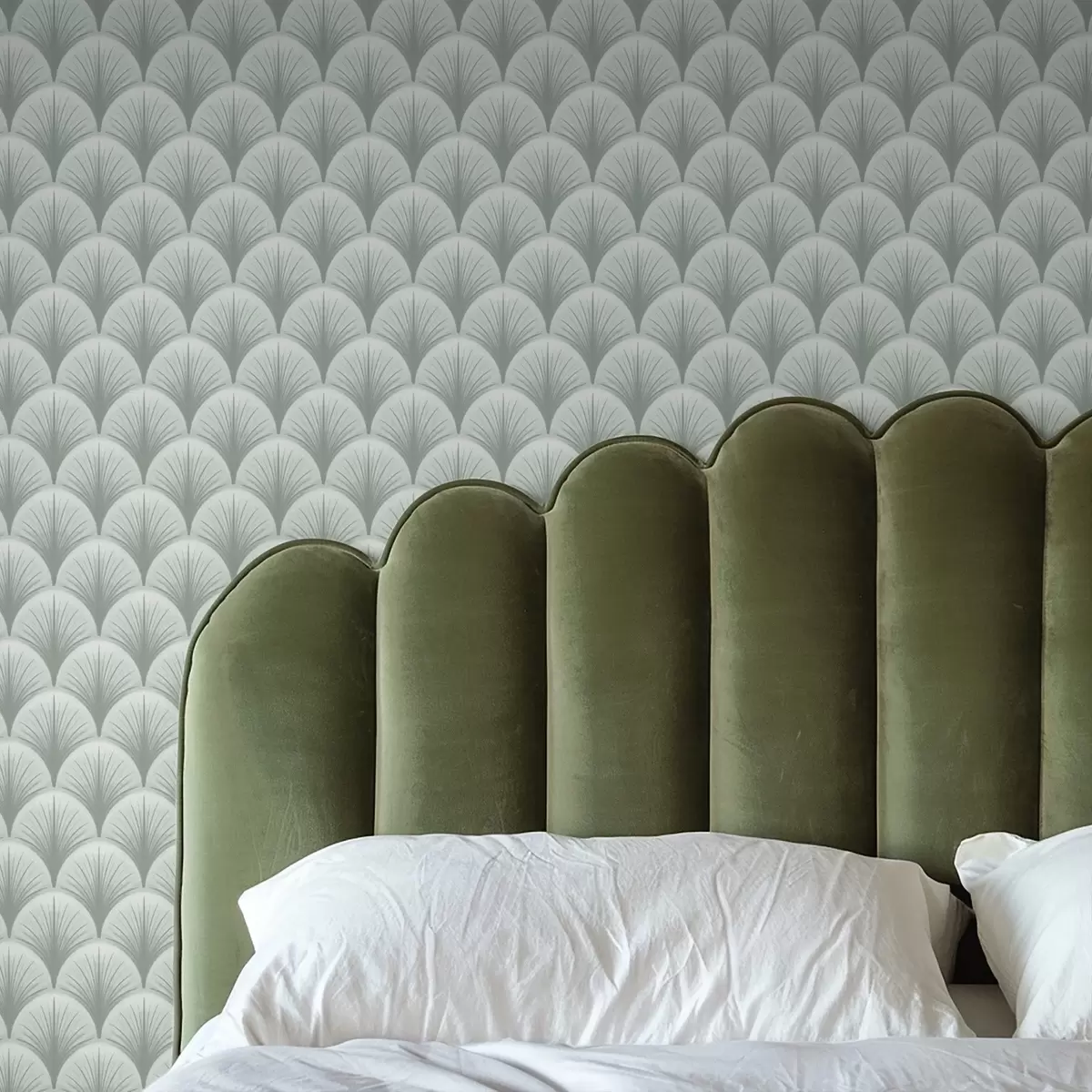 Tapeta Лепезасти лукови од менте са зрацима на мекој зеленкастој позадини бр. a00978v2