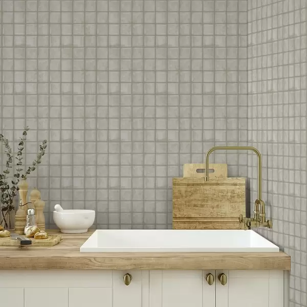 Tapeta Имитација квадратних плочица у мекој сиво-зеленој палети бр. a00988