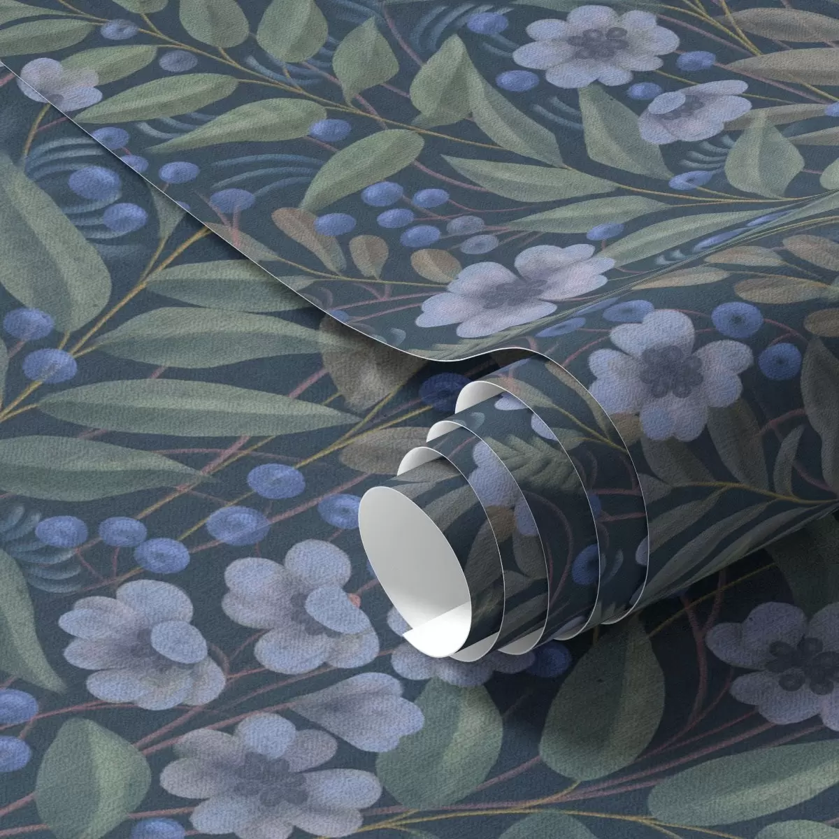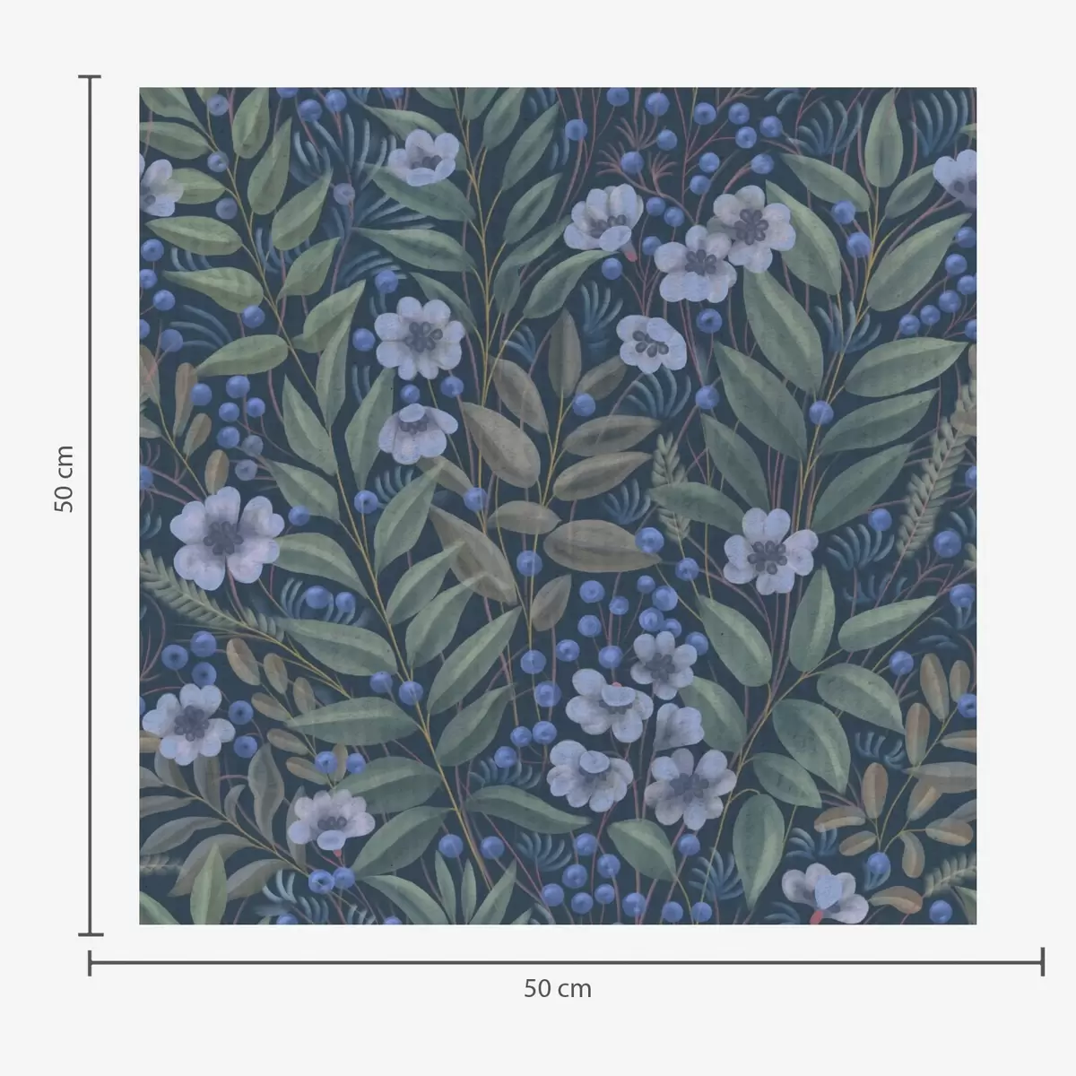 Tapeta Поноћно плаве бобице и бели цветови у густом лишћу бр. a00994