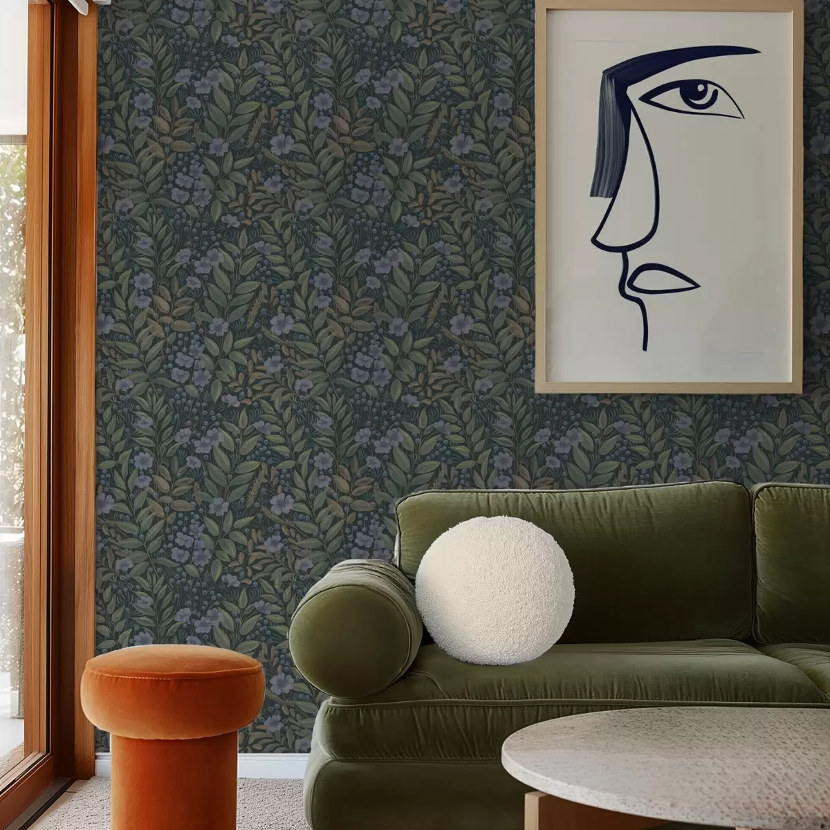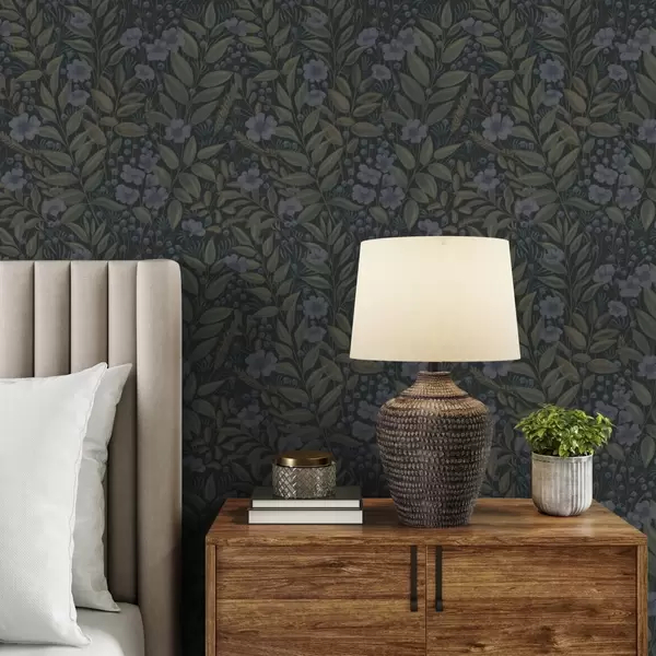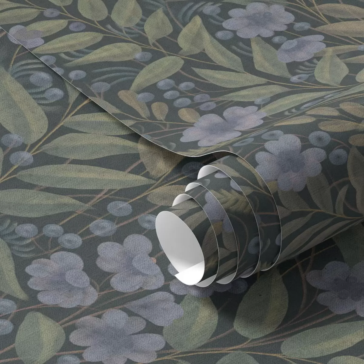Tapeta Шумске бобице и цветови јоргована на позадини боје угља бр. a00994v1