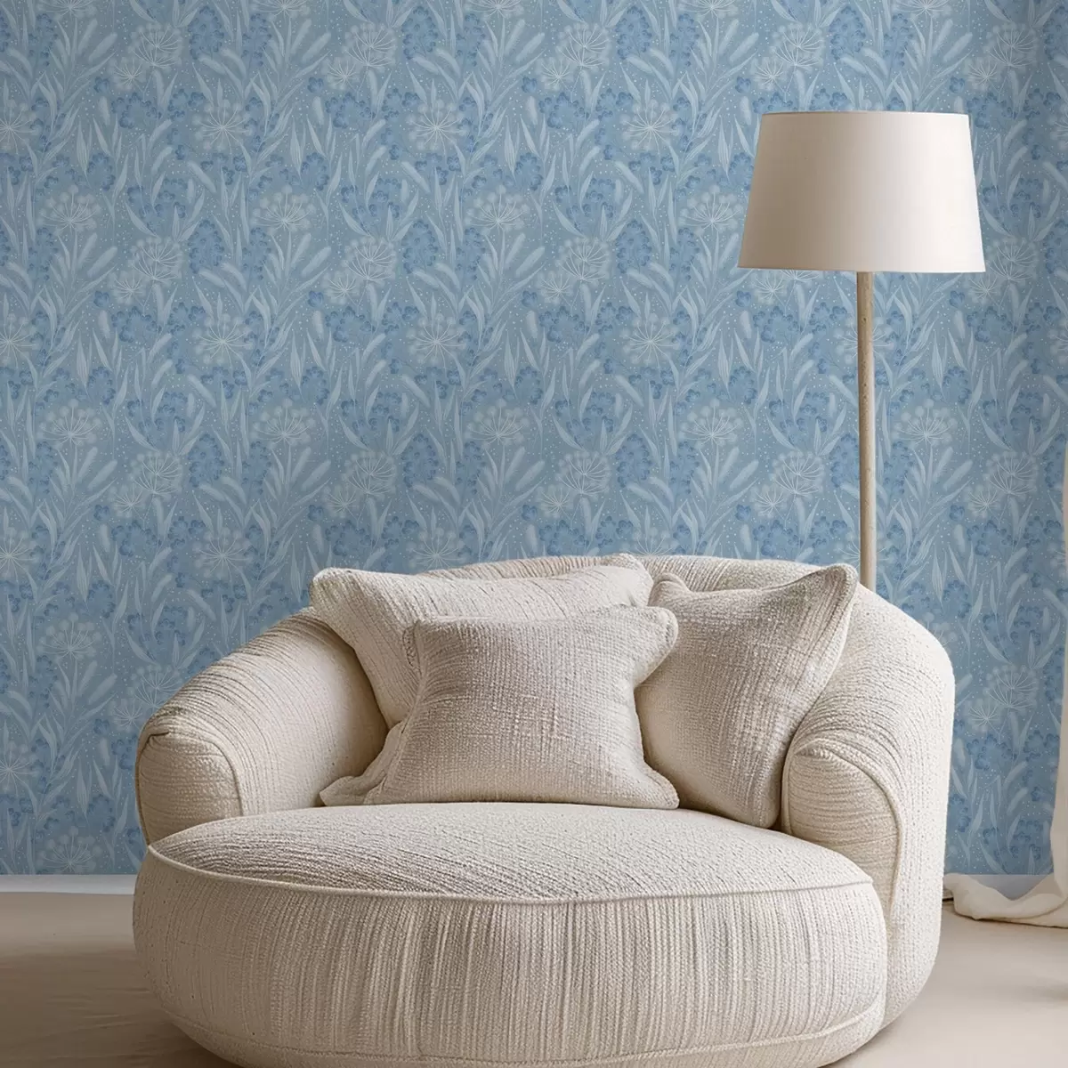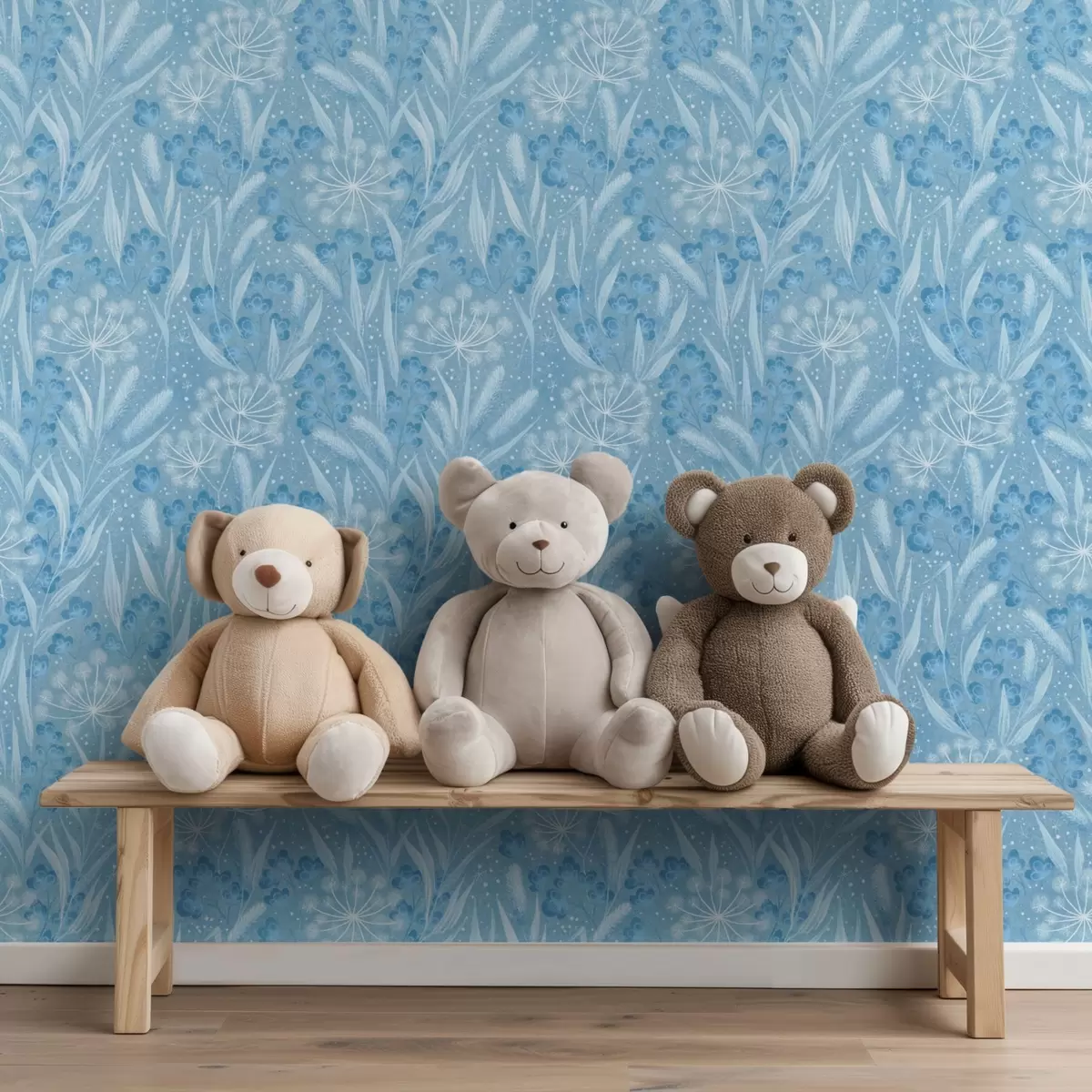 Tapeta Мразовита плава ливада са семеном маслачка и ситним цветовима бр. a00995