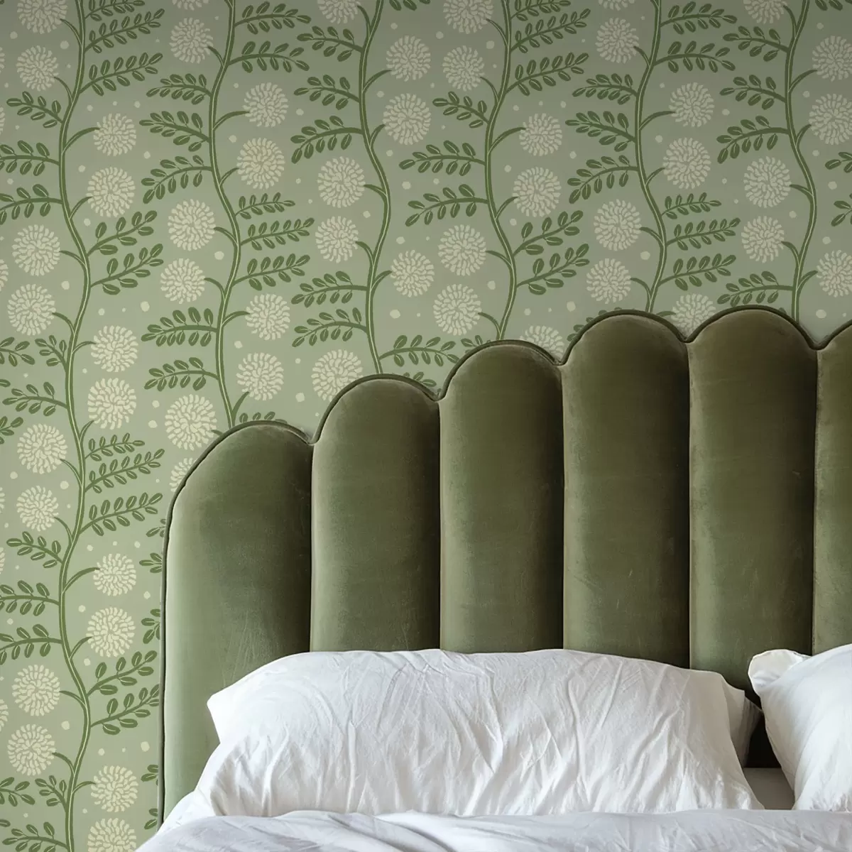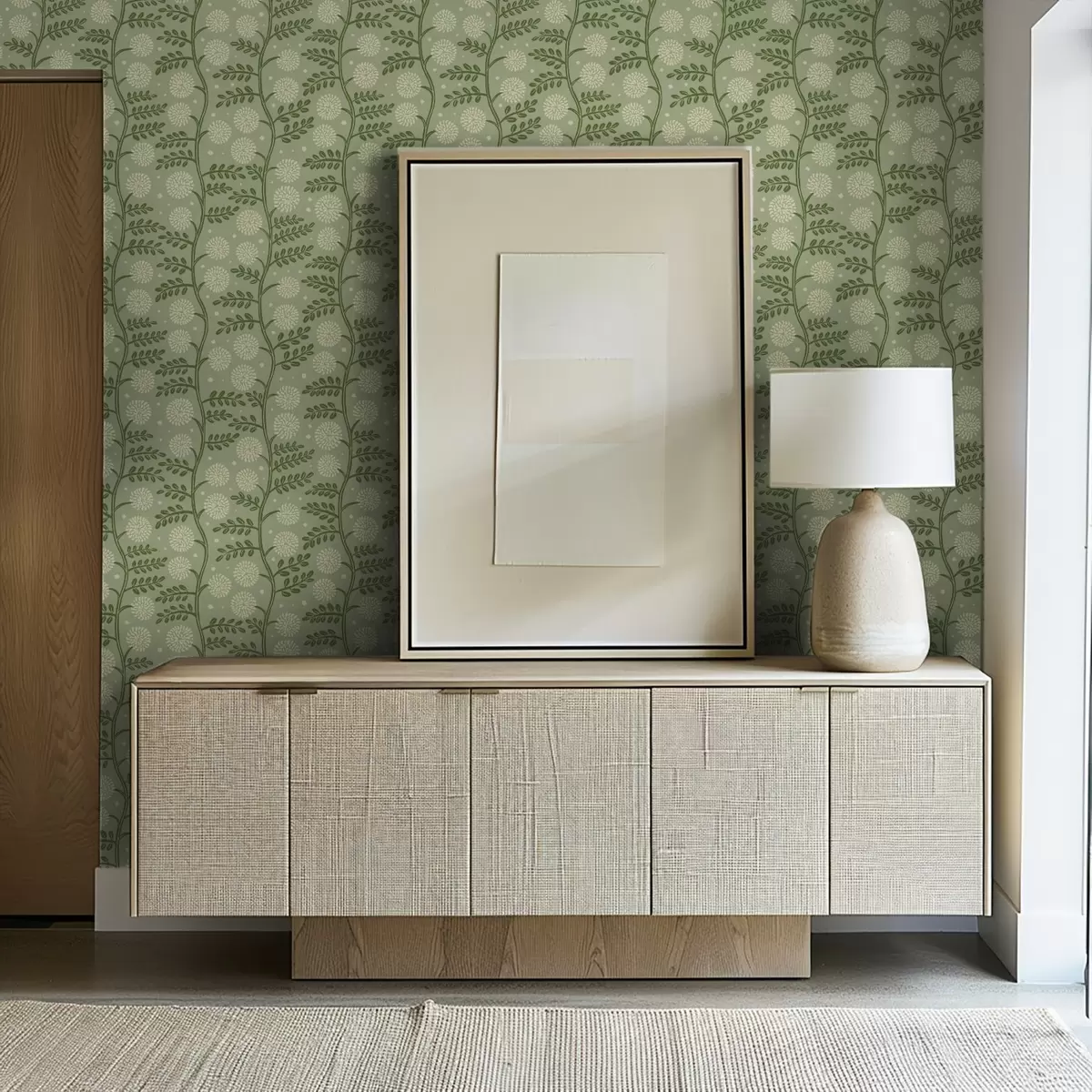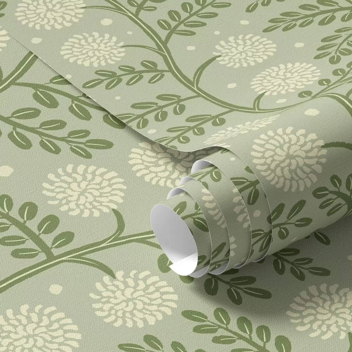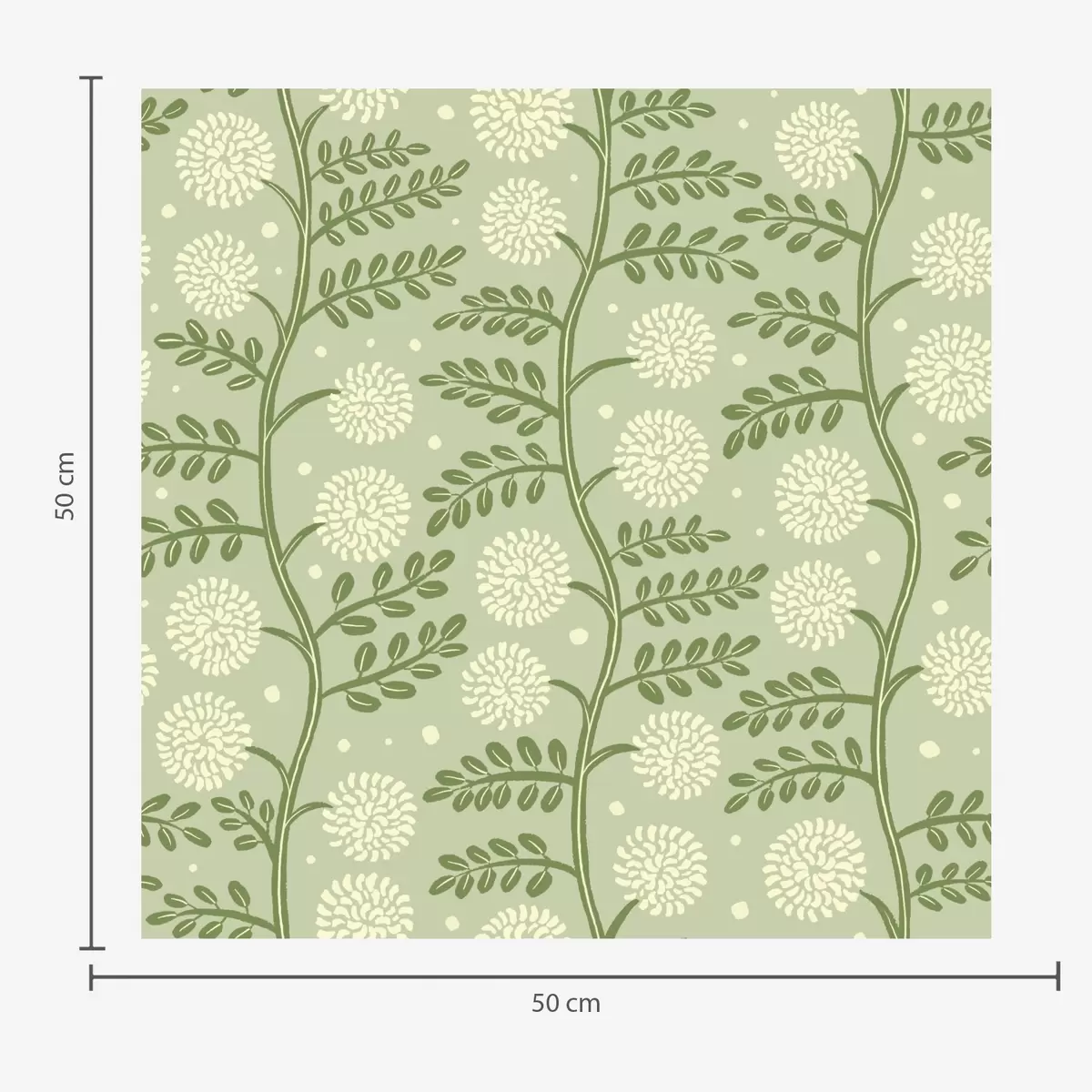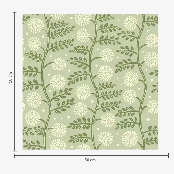 Tapeta Стабљике жалфије зелене боје са пахуљастим цветовима и тачкама боје слоноваче бр. a00997v2