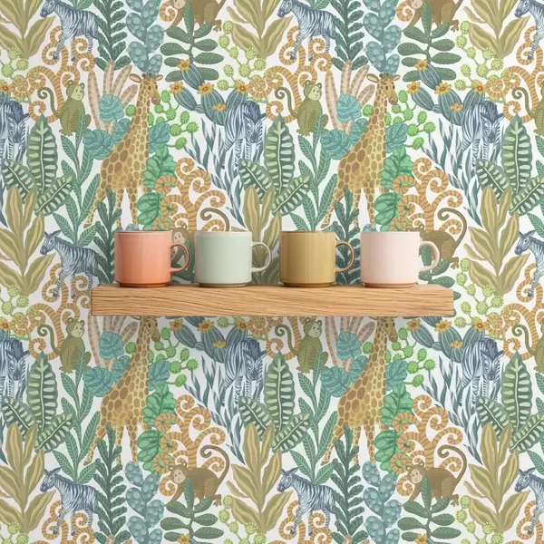 Tapeta Веселе животиње саване међу лишћем на белој позадини бр. a01000
