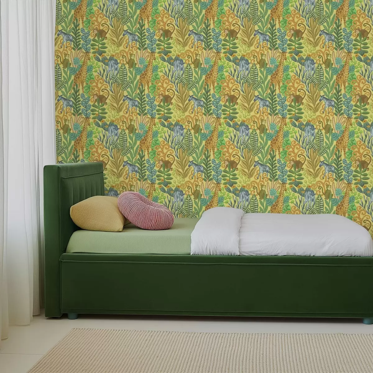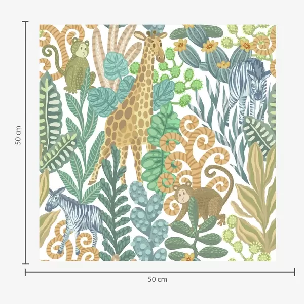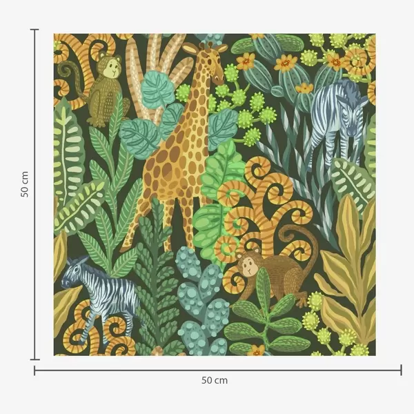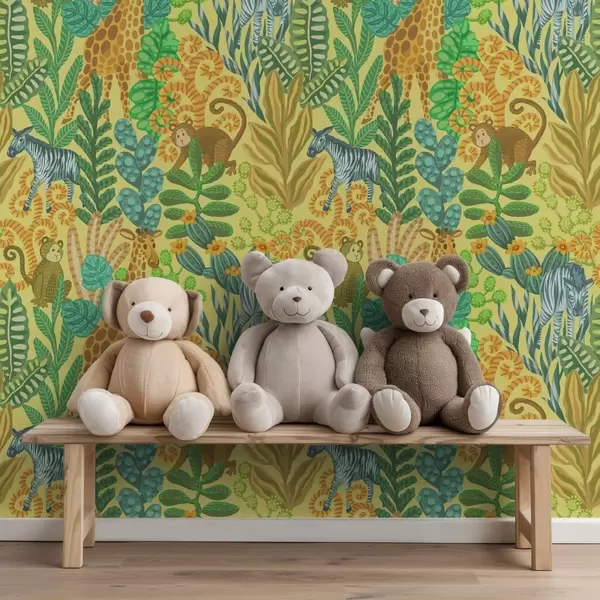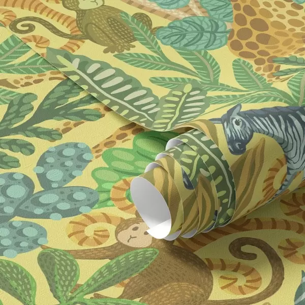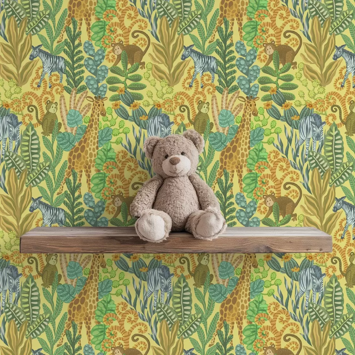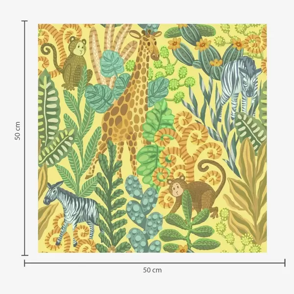 Tapeta Жирафа, зебра и мајмун у јарко жутој савани бр. a01000v1