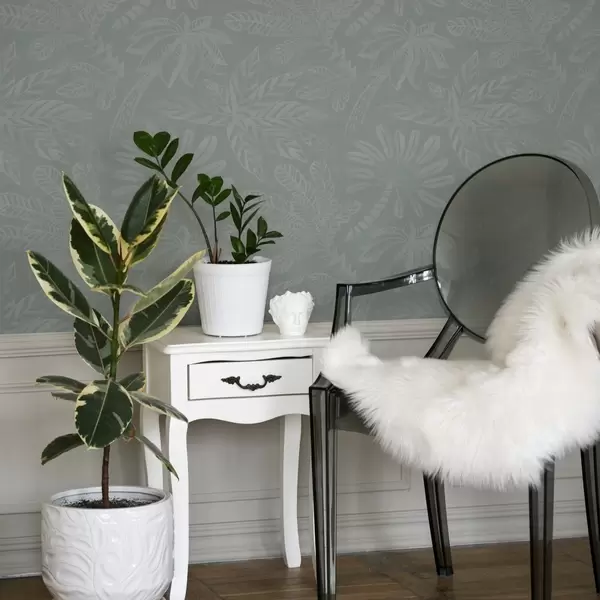 Tapeta Мат велики тропски листови у палети сиве боје менте бр. a01001