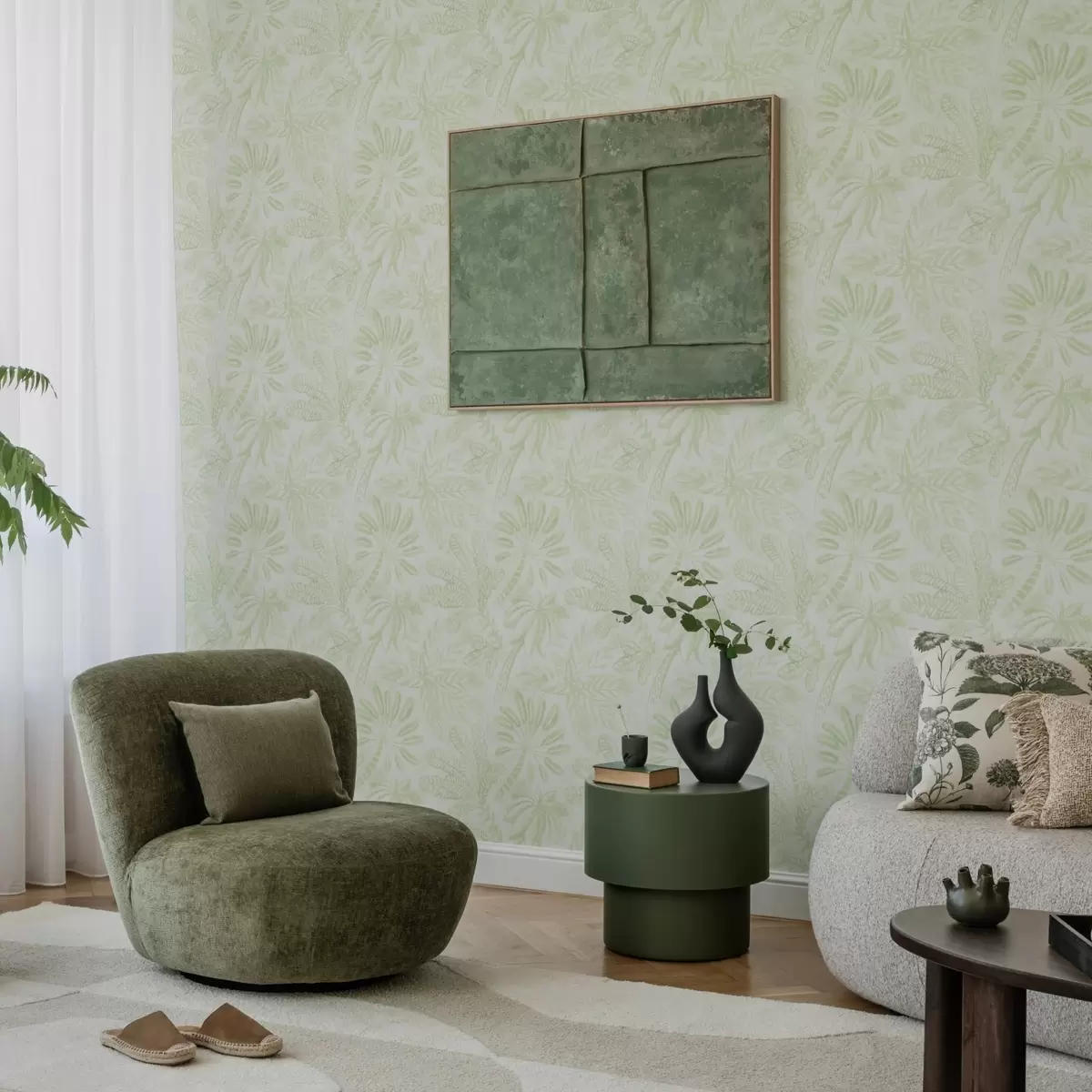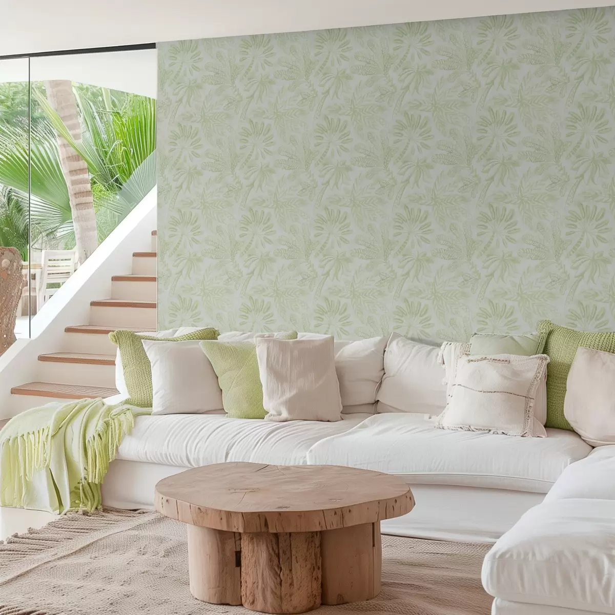 Tapeta Скицирани тропски листови у свежим светлозеленим тоновима бр. a01001v1