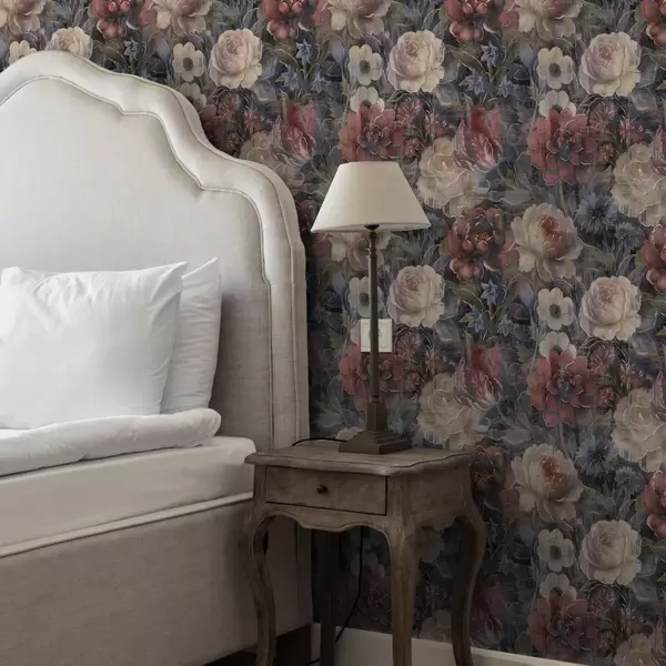 Tapeta Сликовит букет крупног цвећа на тамно индиго позадини бр. a01021