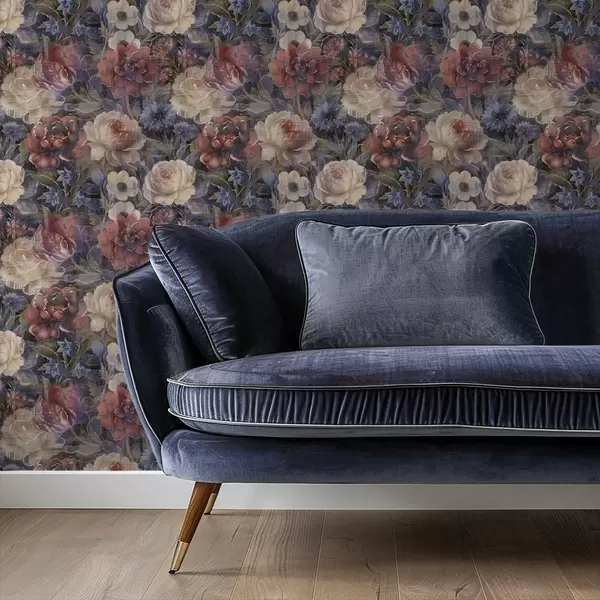 Tapeta Сликовит букет крупног цвећа на тамно индиго позадини бр. a01021
