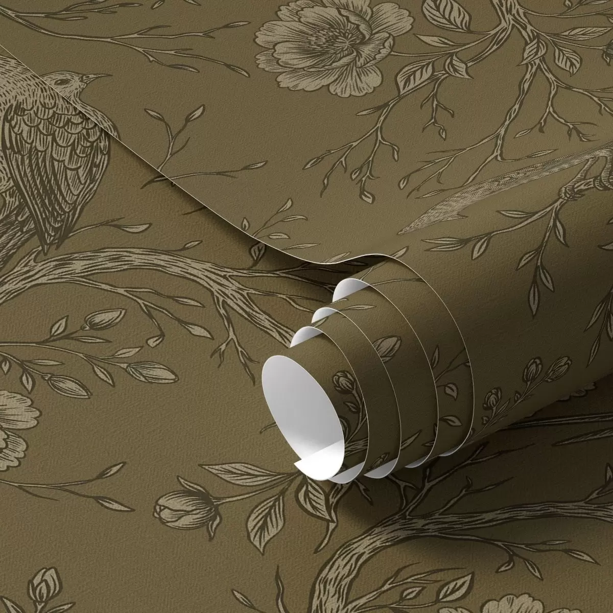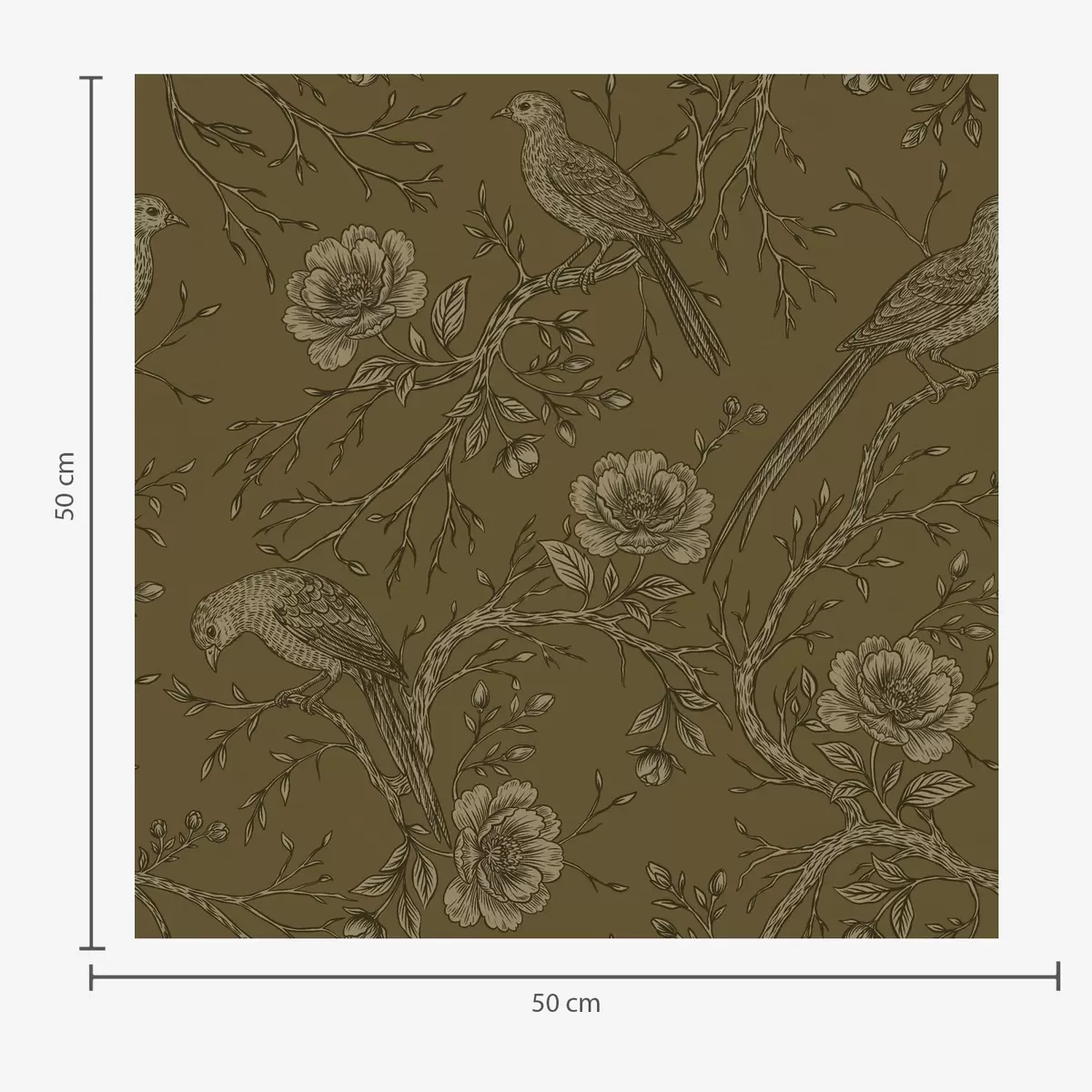 Tapeta Винтаге птице и цвеће на топлој маслинастој позадини бр. a01022v1