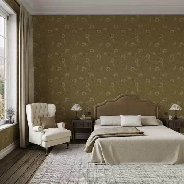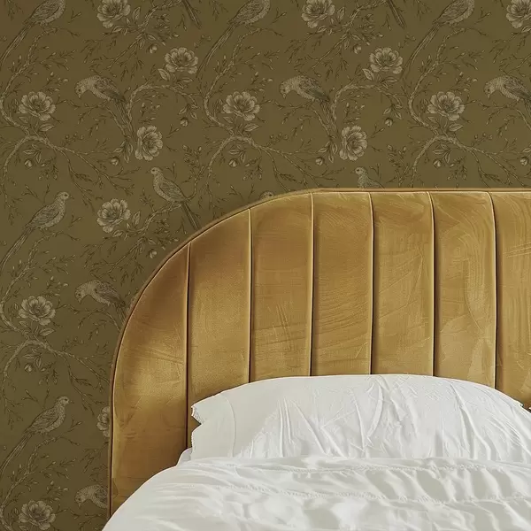 Tapeta Винтаге птице и цвеће на топлој маслинастој позадини бр. a01022v1