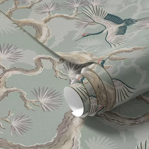 Tapeta Ждралови међу закривљеним гранама на мекој позадини боје жалфије бр. a01023