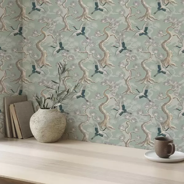 Tapeta Ждралови међу закривљеним гранама на мекој позадини боје жалфије бр. a01023