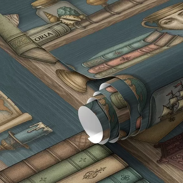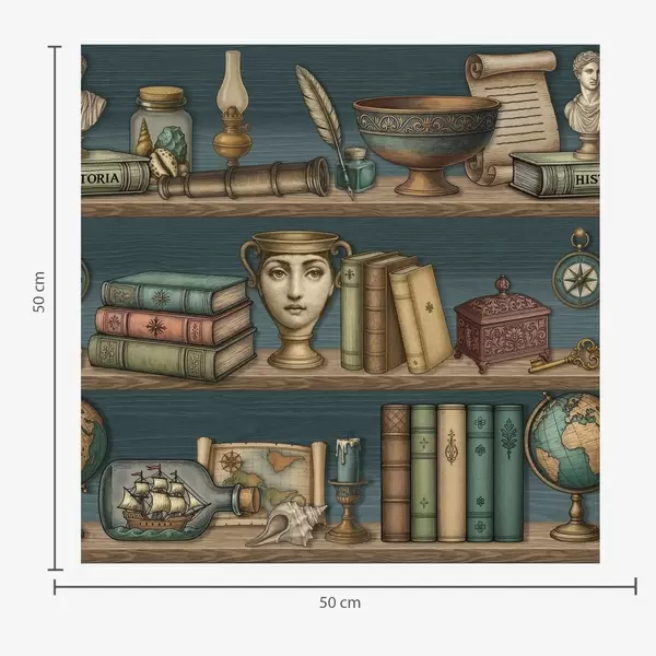 Tapeta Винтажне полице са књигама, глобусом и морским занимљивостима бр. a01036