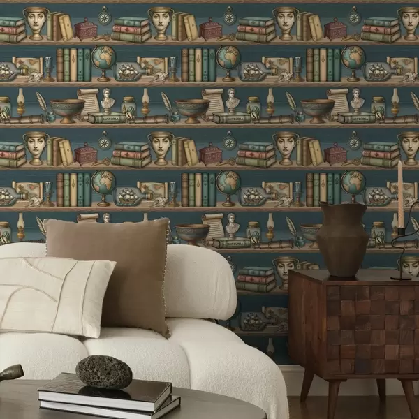 Tapeta Винтажне полице са књигама, глобусом и морским занимљивостима бр. a01036