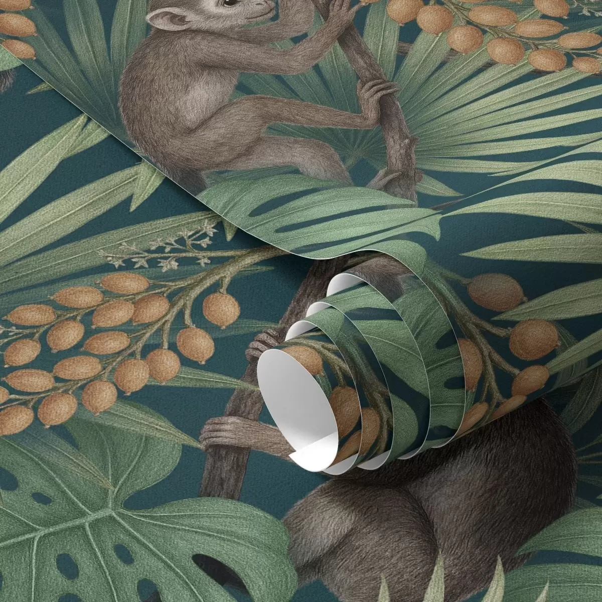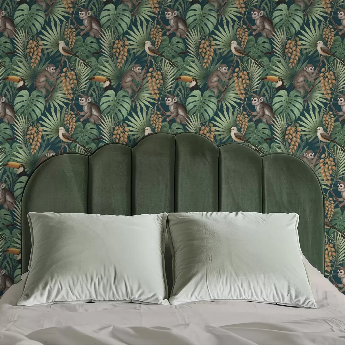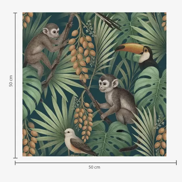 Tapeta Мајмуни и тропске птице у густом лишћу џунгле бр. a01037