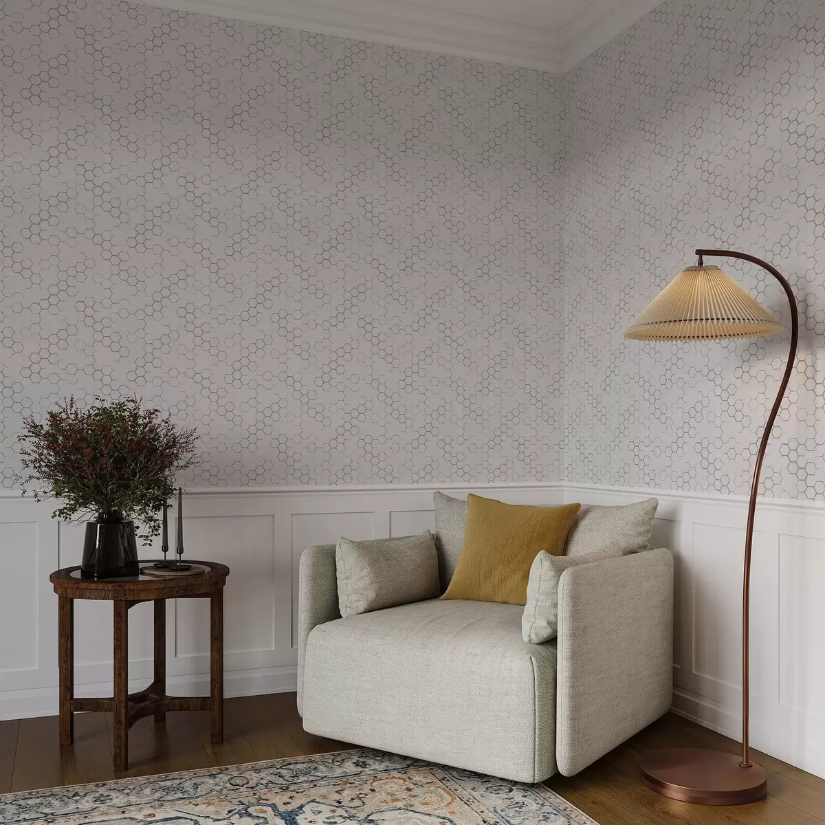Tapeta Светли саћасти узорак са танким сивим обрисима бр. a01061