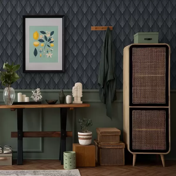 Tapeta Хладни плаво-сиви Арт Деко са лепезастим облицима бр. a01064v3