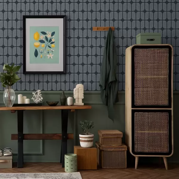 Tapeta Тамноплава позадина са сивим мозаиком заобљених плочица бр. a01068v1