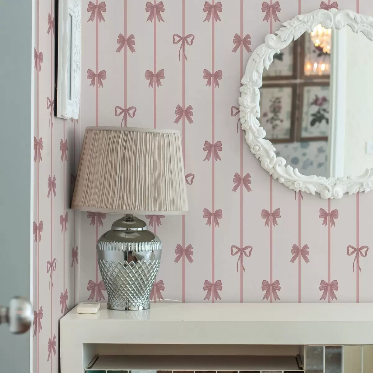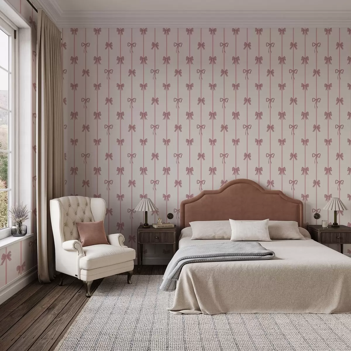 Tapeta Ружичасте машне са тракама на светлој позадини бр. a01074