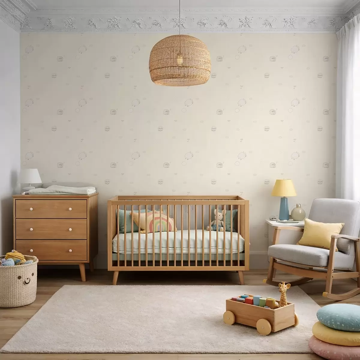Tapeta Слатки узорак са овцама и малим срцима бр. a01109