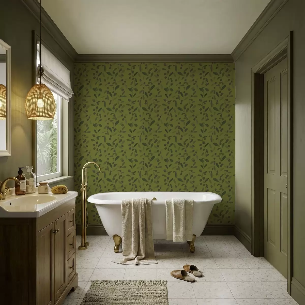 Tapeta Зелене гране са лишћем и бобицама на маслини бр. a01113