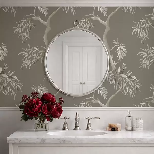 Tapeta Светла грана са лишћем на маслинастој позадини бр. a01117v1