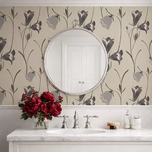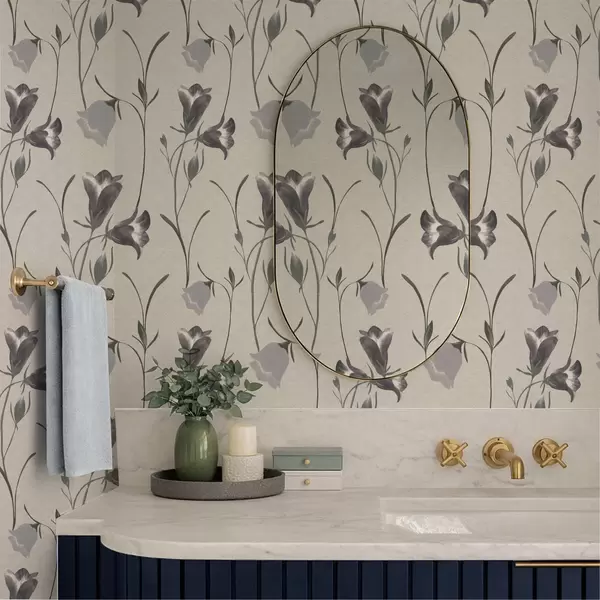 Tapeta Сиви звончићи на светло беж позадини бр. a01119