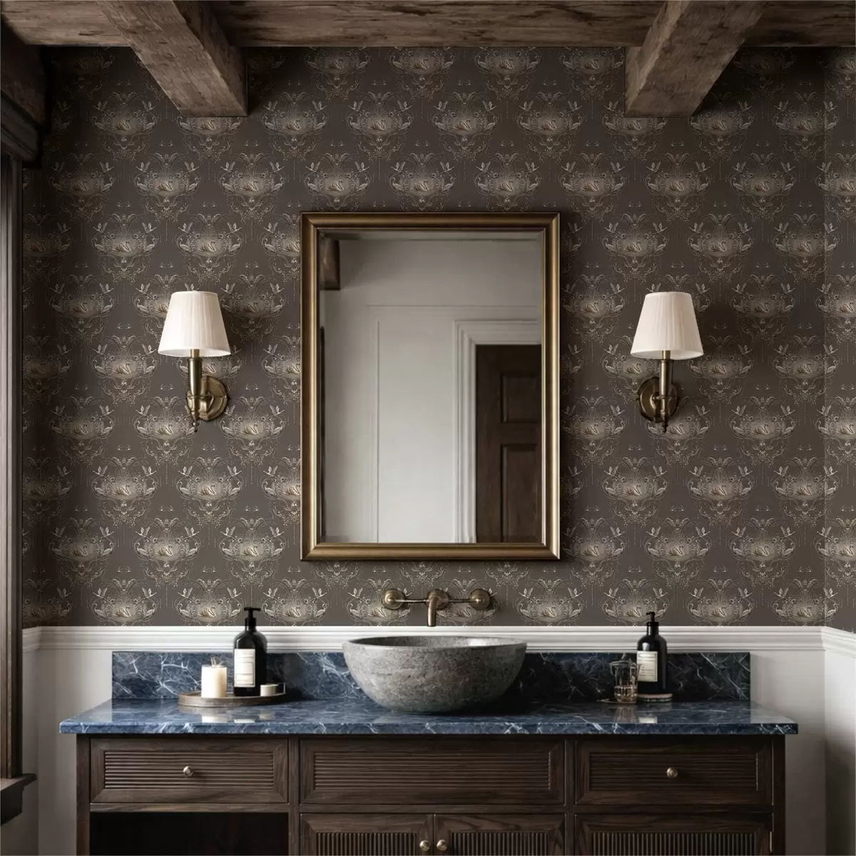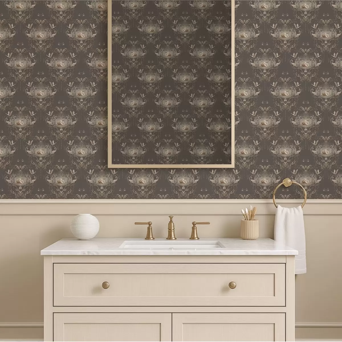 Tapeta Украс са лабудовима и птицама у класичном стилу бр. a01161