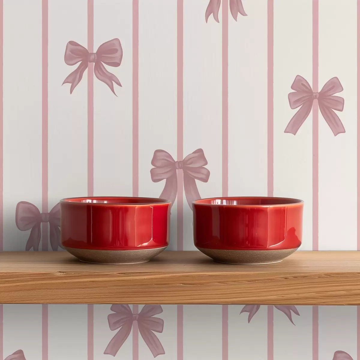 Tapeta Ружичасте машне на вертикалним пругама на светлој позадини бр. a01162