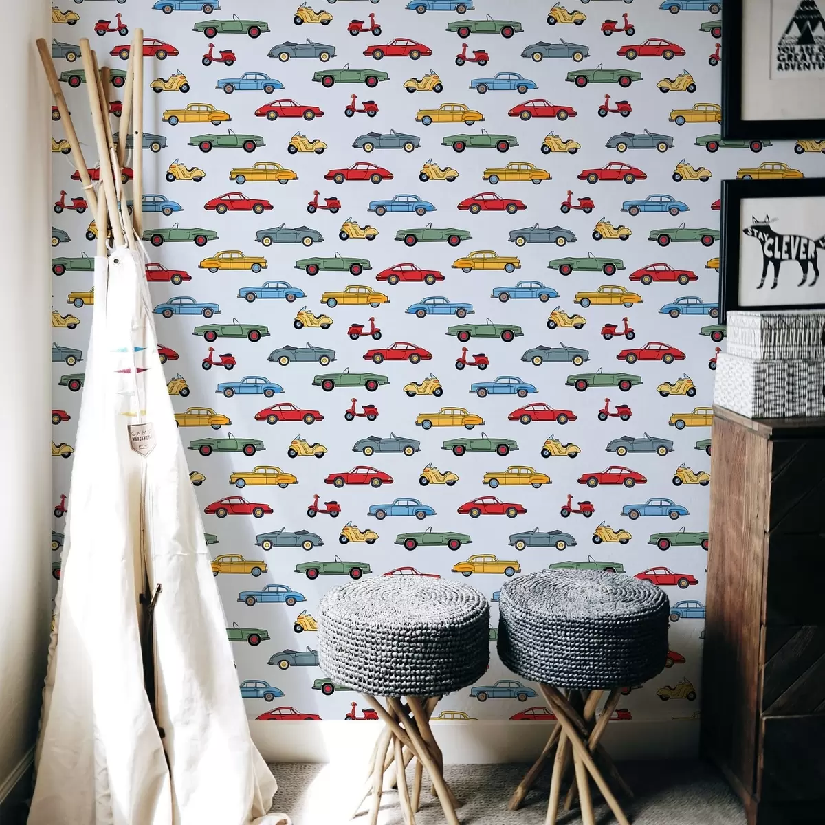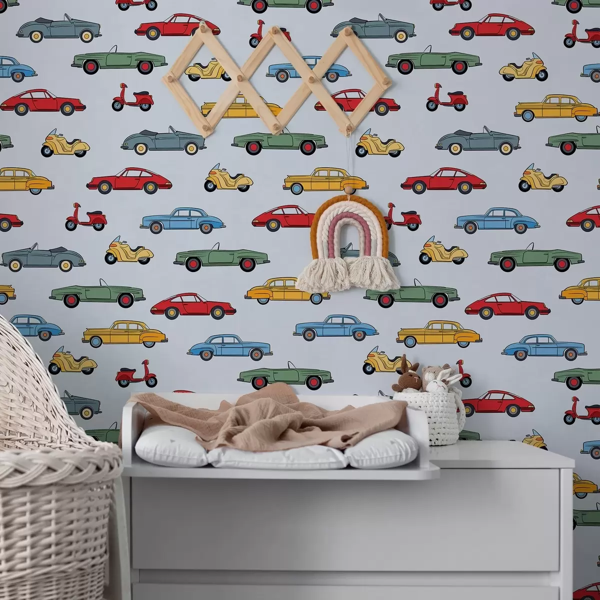 Tapeta Ретро аутомобили и скутери на плавој позадини бр. a01172v2