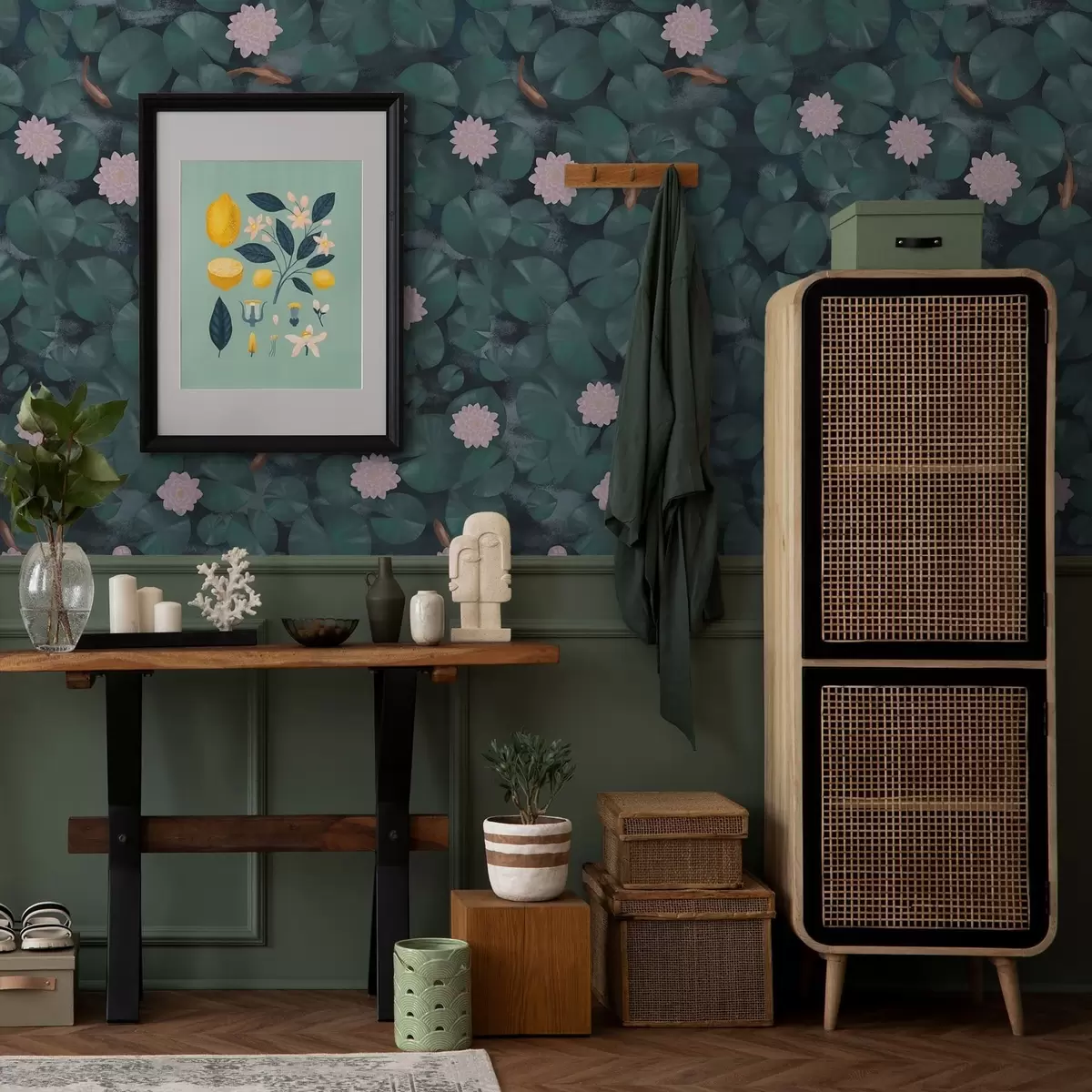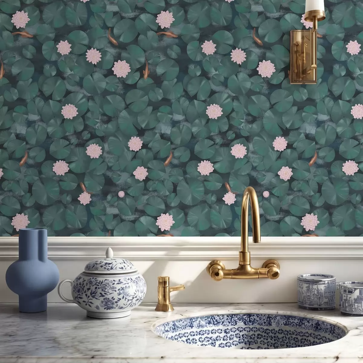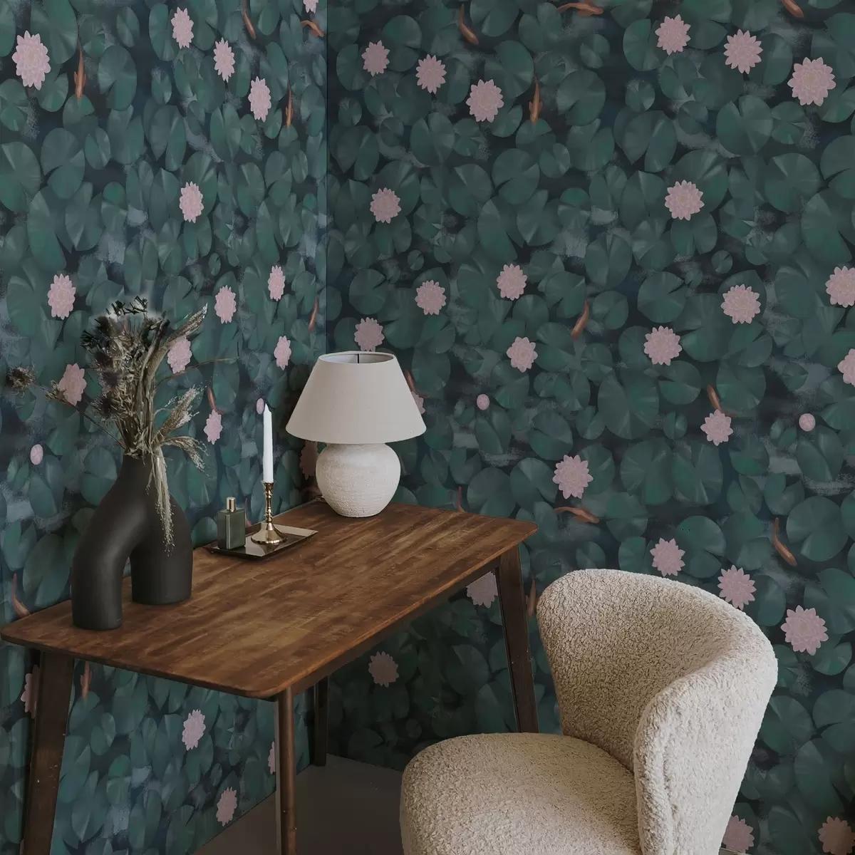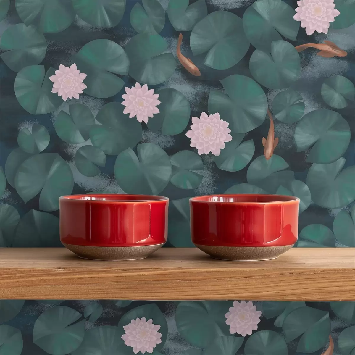 Tapeta Локшани са цвећем и рибом на тамној позадини бр. a01177